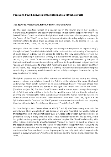 Pope John-Paul II, Encyclical Redemptoris Missio (1990), extracts