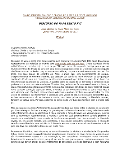 DISCURSO DO PAPA BENTO XVI